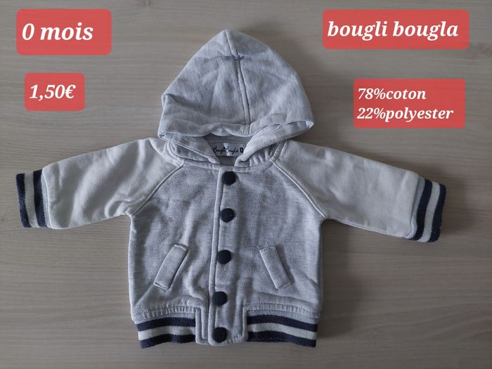 Vends Veste grise légère garçon 0 mois Elle est en très bon état. Maison non fumeur. 78%coton 22%polyester