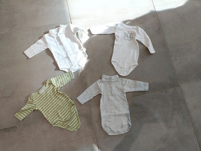 Lot de 4 bodies en manches longues 3 mois Très bon état Différentes marques : 2 Petit bateau 1 Kiabi 1 Kitchou
