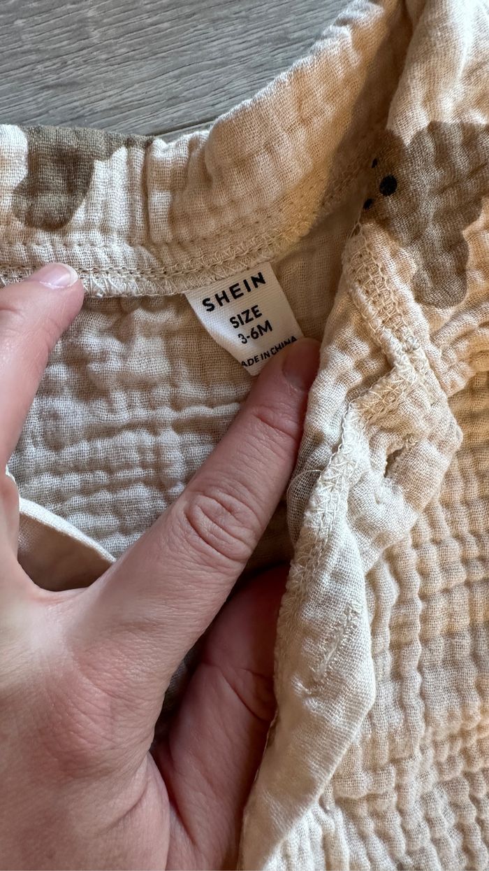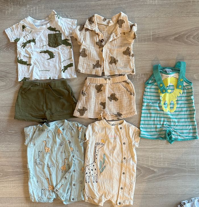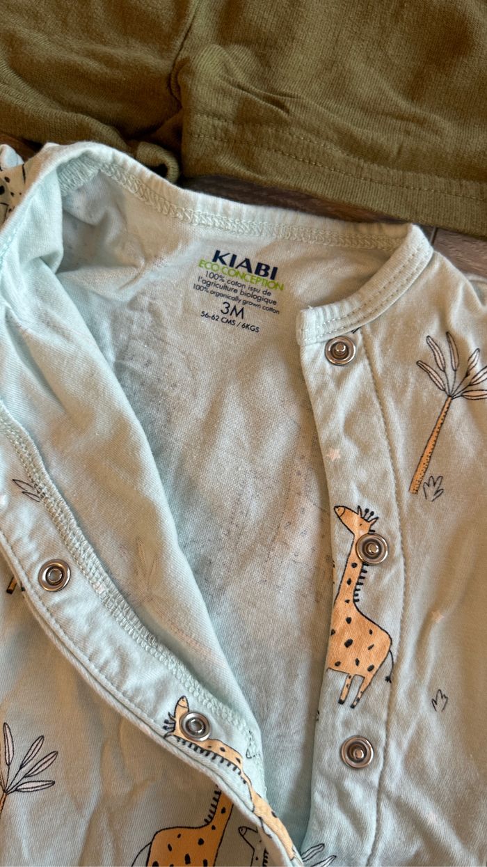 Kiabi (2 combi) Primark (ensemble crocodile) Shein (ensemble nounours) Obaibi (combi rayure) Très bon état 3 mois