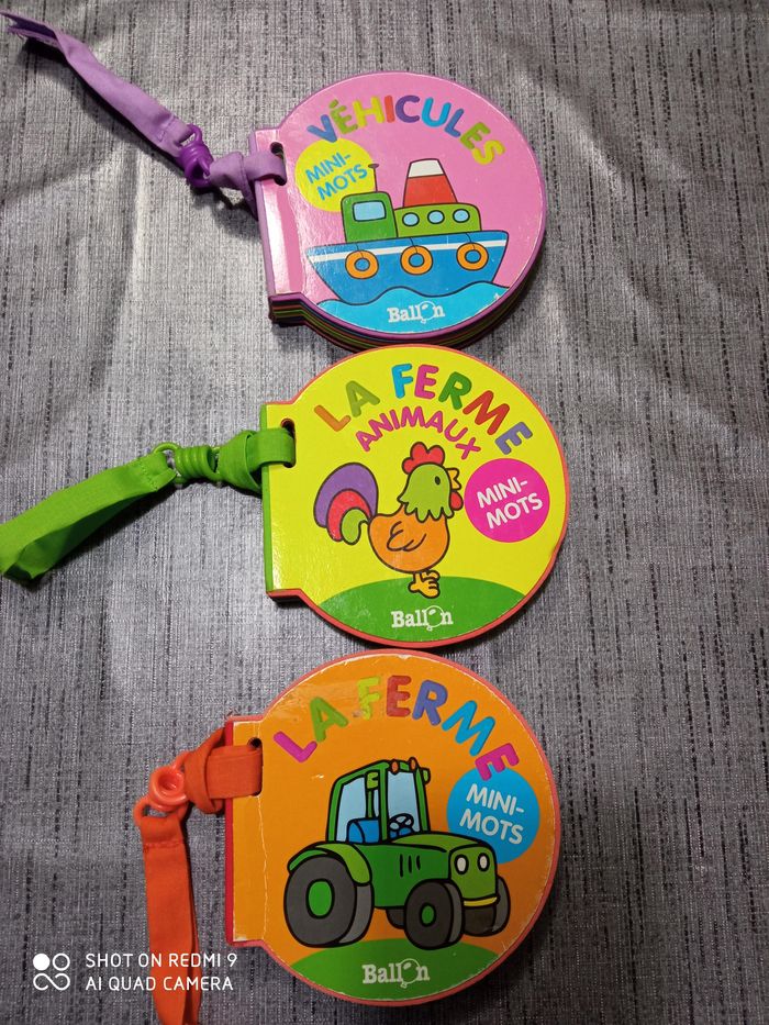 Lot de 3 livres : les véhicules, la ferme et les animaux de la ferme Peuvent s'accrocher au landeau, siège auto, poussette... Bon état Acheté 6.95€ l'unité (voir photo)