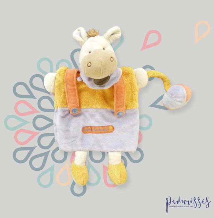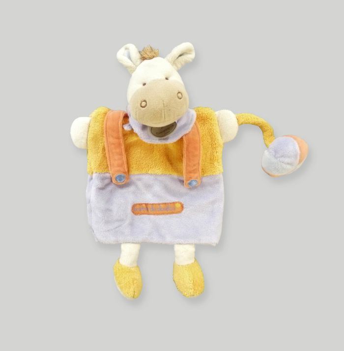 Doudou âne marionnette velours jaune bleu Graines de doudou Doudou et Compagnie 29 cm - photo numéro 1