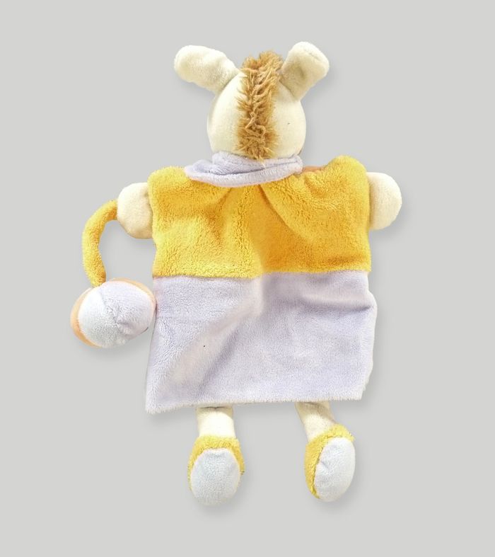 Doudou âne marionnette velours jaune bleu Graines de doudou Doudou et Compagnie 29 cm - photo numéro 4