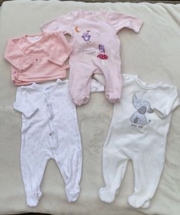 Lot de 3 pyjama - grenouillère - naissance et 1 mois