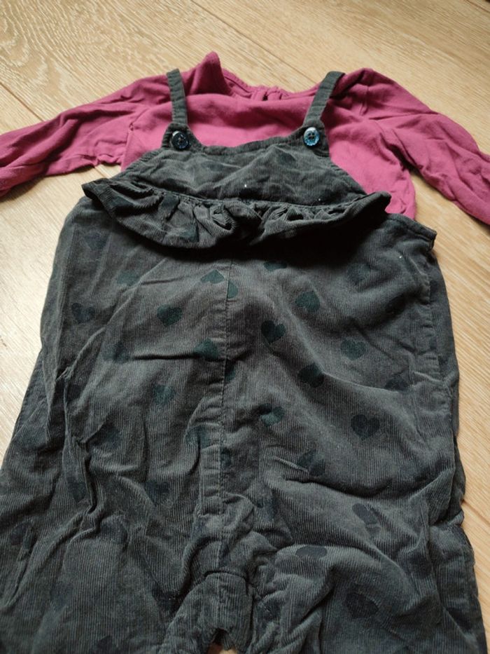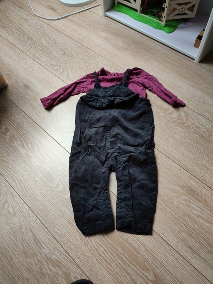 Ensemble haut ML + salopette velours 12 mois - photo numéro 1