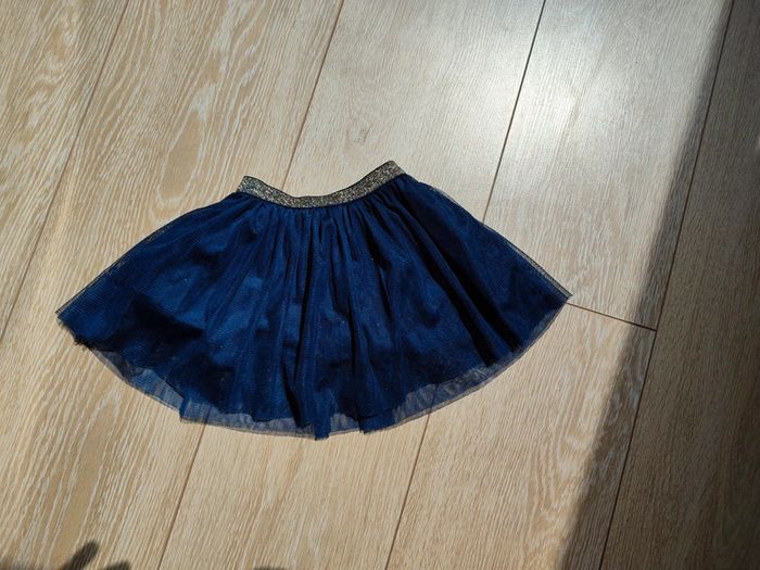 Jupe bleu nuit avec pailette dorée. Marque obaibi taille 6 mois. Comme neuve peu portée