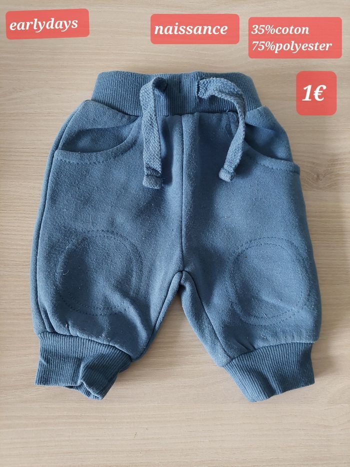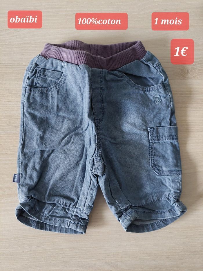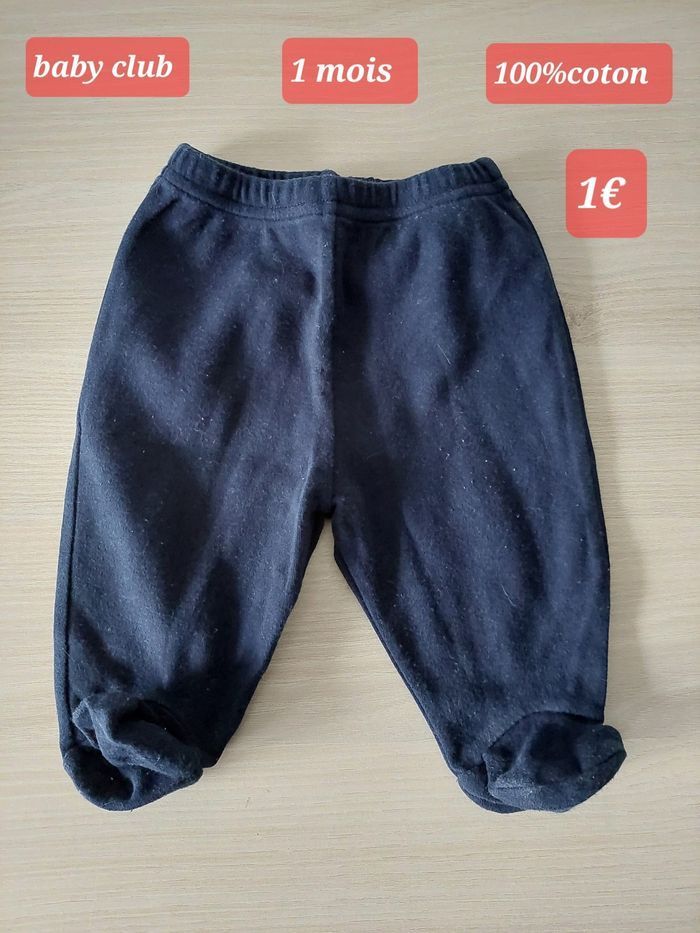 Bonjour, Je vends 7 pantalons pour garçon 1 mois. Il y a la marque et la matière sur chaque photo. Ils sont en très bon état. Maison non fumeur. Je fais 1€ le pantalon