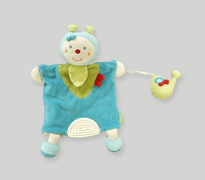 Doudou papillon insecte marionnette velours bleu vert Les diabolos menthe Babysun 29 cm