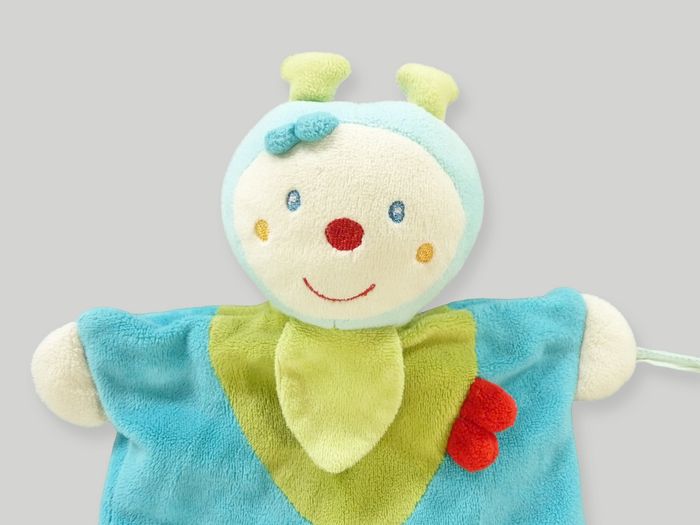 Doudou papillon insecte marionnette velours bleu vert Les diabolos menthe Babysun 29 cm - photo numéro 6