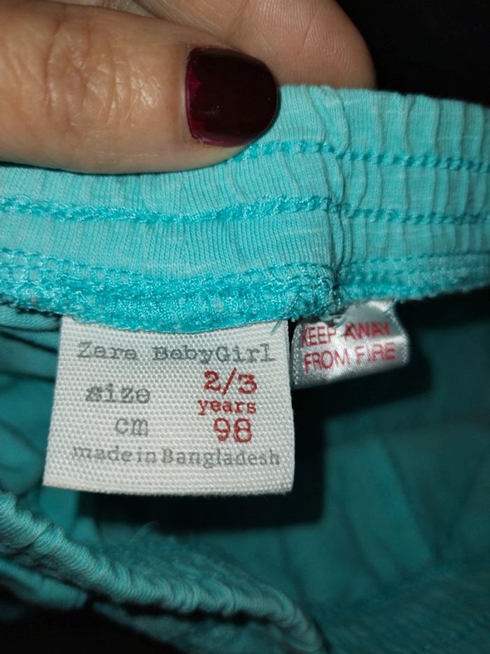 Short Zara 2/3 ans Bleu turquoise Dentelle devant Tâche derrière Je donne un t-shirt boutchou 18 mois un peu tâché N hésitez pas à regarder mon dressing réductions si lot 😉