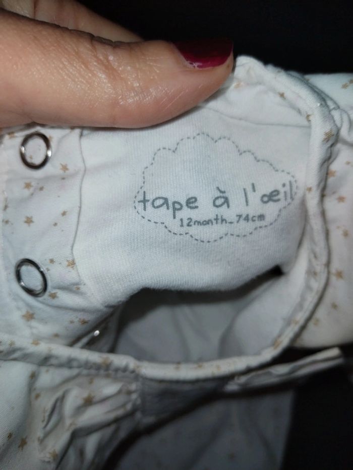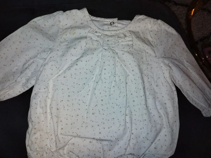 Haut manches longues tape a l'oeil 12 mois Blanc avec étoiles dorées Noeud devant Taille élastique N hésitez pas à regarder mon dressing réductions si lot 😉