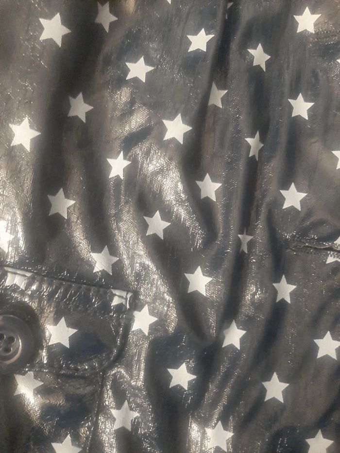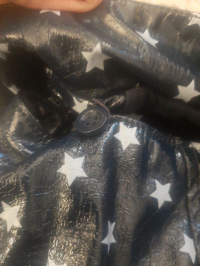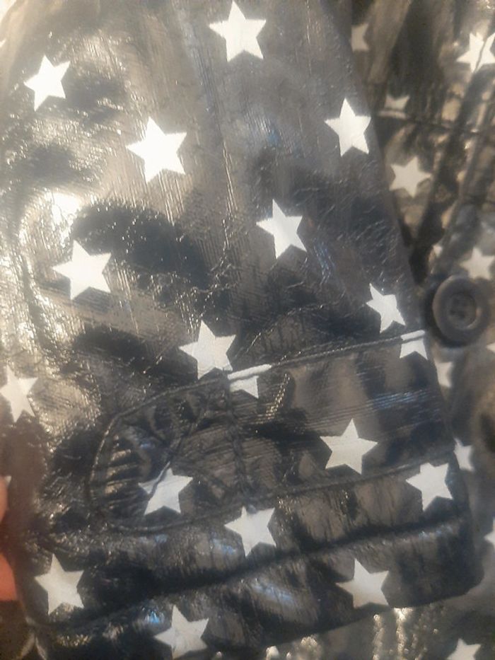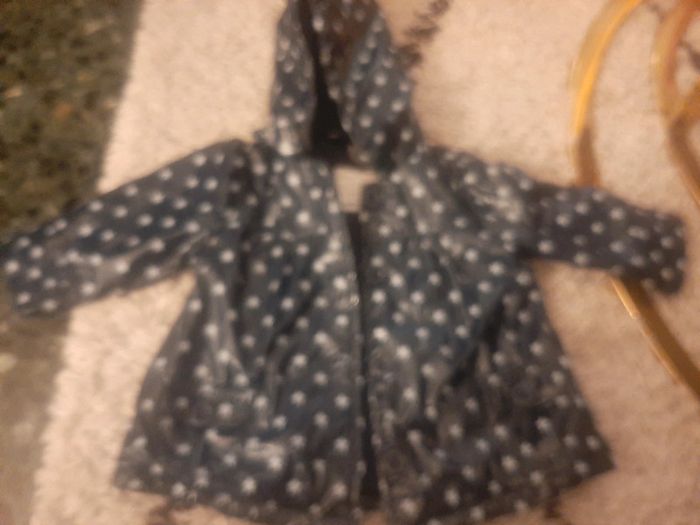 Imperméable tape à l œil 12 mois 1 an Bleu marine avec des étoiles 2 petites poches Se ferme par des boutons Capuche amovible Endroit pour marquer le prénom N hesitez pas à aller voir mon dressing reductions si lot 😉
