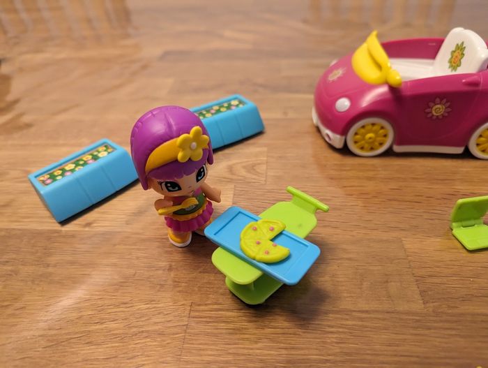 Lot PinyPon Très bon état Tout ce qu'il y a présent sur la photo. 1 voiture avec coffre qui s'ouvre, 2 personnages et 17 accessoires.