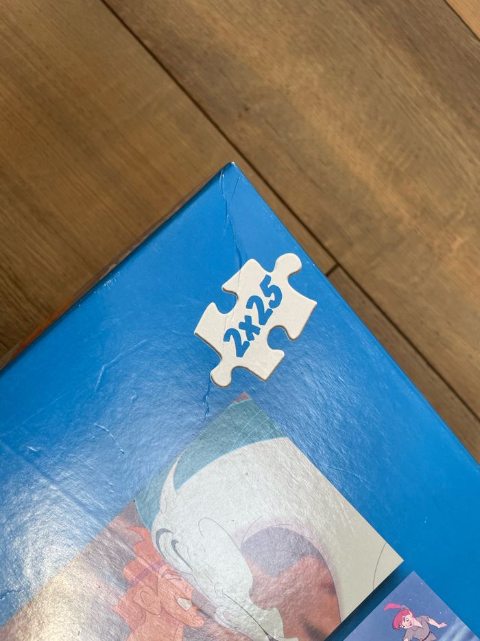 2 puzzles de 25 pièces dans la même boîte 2 x 25 pièces Quelques pièces légèrement abîmées (voir photos) Complet
