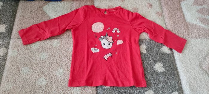 😻 Tee shirt bébé fille 😻 Manches longues 😻 Thème "Licorne" 😻 Marque Pat & Ripaton 😻 Taille 18 mois 😻 Très bon état général (mis à part la marque qui s'efface et les dessins qui craquèlent légèrement avec le lavage)