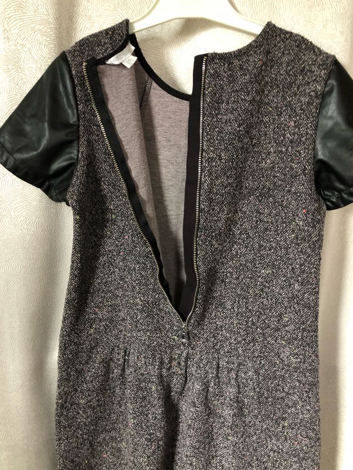 Magnifique robe chiné fluo corail et vert Manches courtes similicuir 55% polyester 45% pamuk Taille 10 /11 ans 146 cm Panco girls