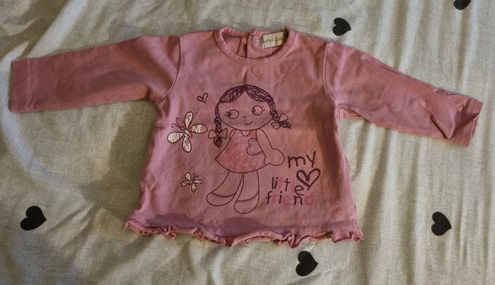 T shirt 3 mois rose avec petite fille. Très bon état.