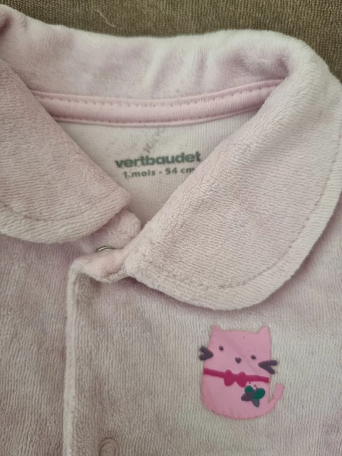 Pyjama velours 1 mois. Très bon état. Vertbaudet Petit chat