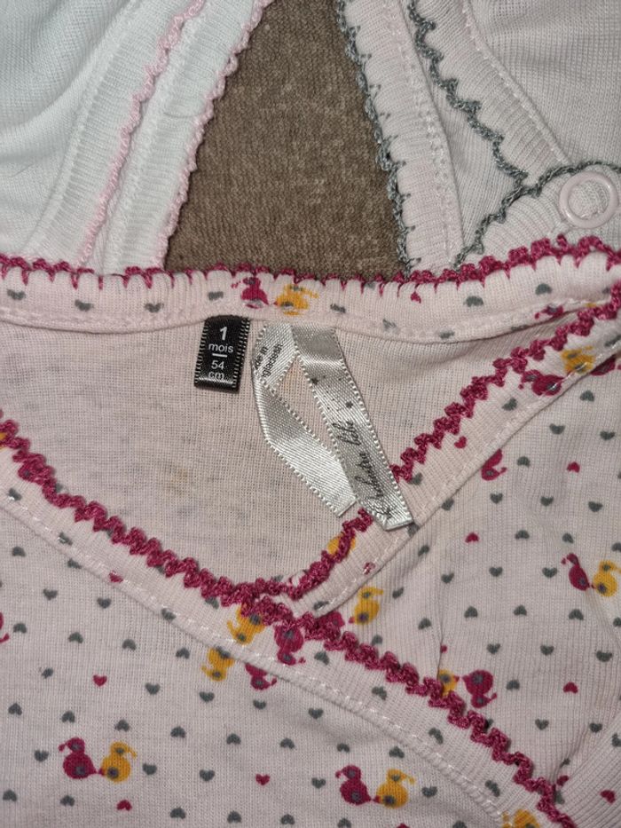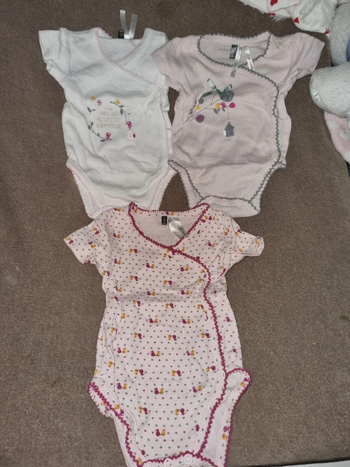 3 bodies manches courtes: 2 naissances et un 1 mois. En très bon état.