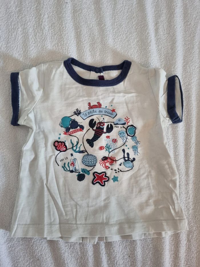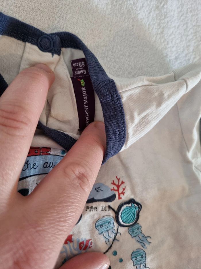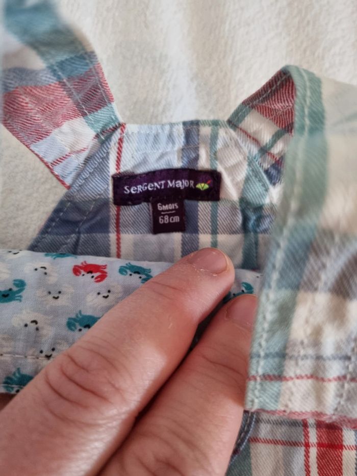 Ensemble t shirt et salopette taille 6 mois, sergent major. Parfait état. Pour l'été !