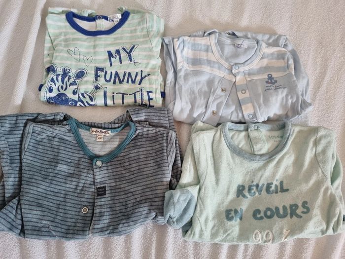 Lot de 4 pyjamas été et hiver taille 6 mois.