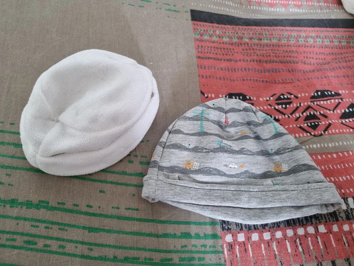 Lot de 2 bonnets nouveau-né blanc et gris - photo numéro 1