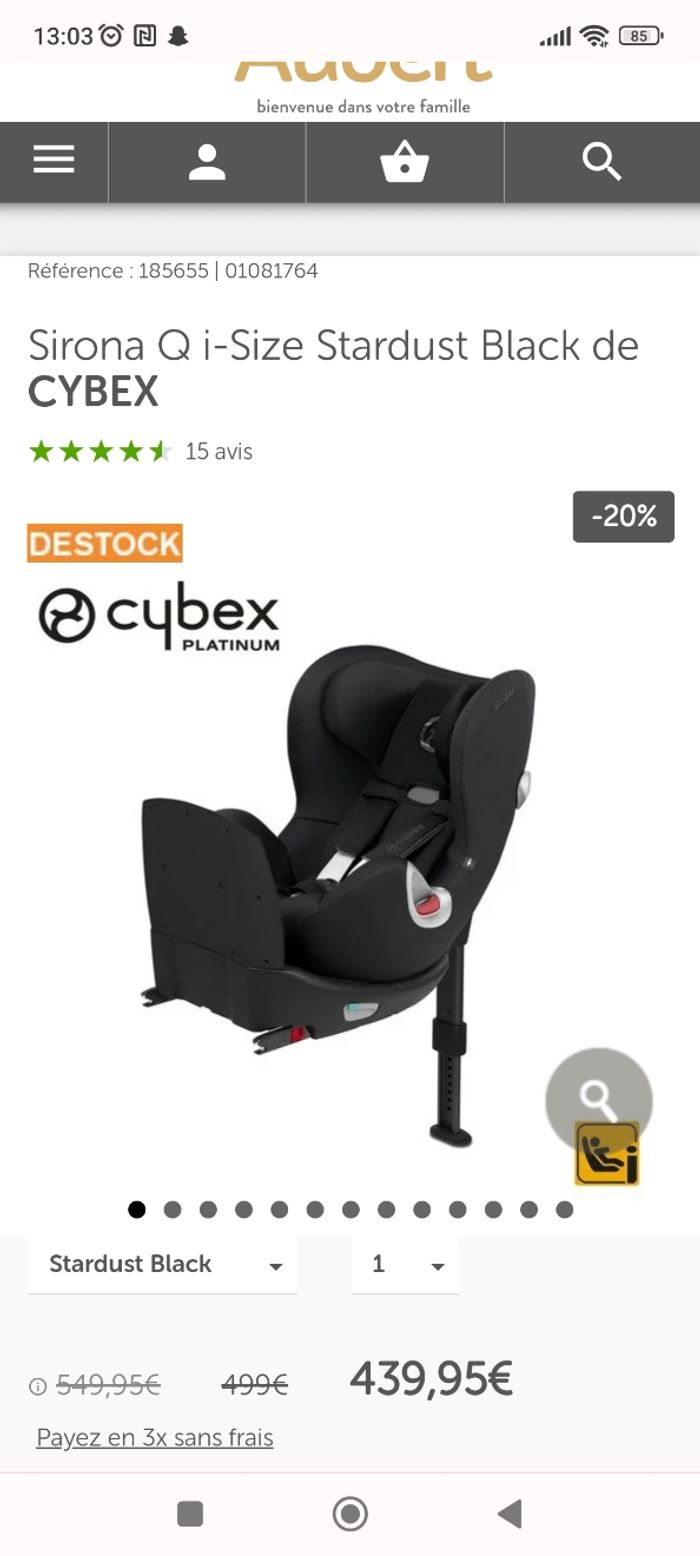 Siège cybex sirona q-i Size platinium Dos a la toute jusqu'à 105 cm après face a la route avec bouclier. Un des meilleurs au crash test. Jamais accidenté en parfait état. Je suis enseignante a la conduite et a la sécurité routière, je sais donc l'importance d'un bon dispositif de sécurité pour les enfants ! De o kg a 18kg Bras de force Système isofix 360 degrés Avec bouclier Acheter environ 500 Euros Il a 2 ans j'ai tout les accessoires (bouclier, minimazer mode d'emplois etc..) en bon état et je peut tout expliquer pour le mettre en place ainsi que pour l'utiliser. N'hésitez pas a me posé des questions j'y répondrai !