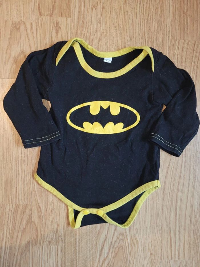Lot bodies manche longue. Les 3 basique viennent de chez orchestra. Très bon état. Le Batman taille un peu plus grand. Taille 6 mois
