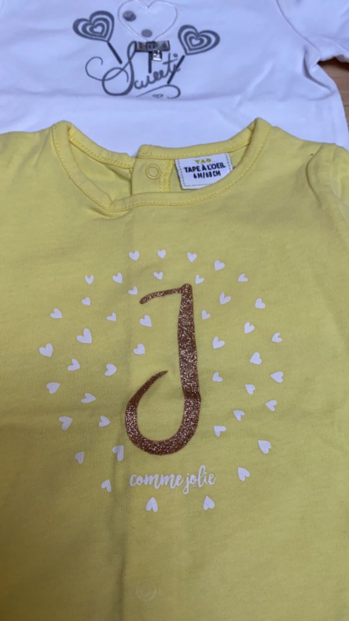 Lot de 4 t-shirt manche courte - 6 mois - 68 cm - Très bon état 1 orchestra 1 TAO 1DPAM 1 gymp #Fille6moisJessica2885