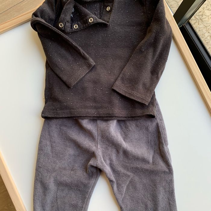 Pantalon velours & t-shirt noir chiné 18 mois - photo numéro 1