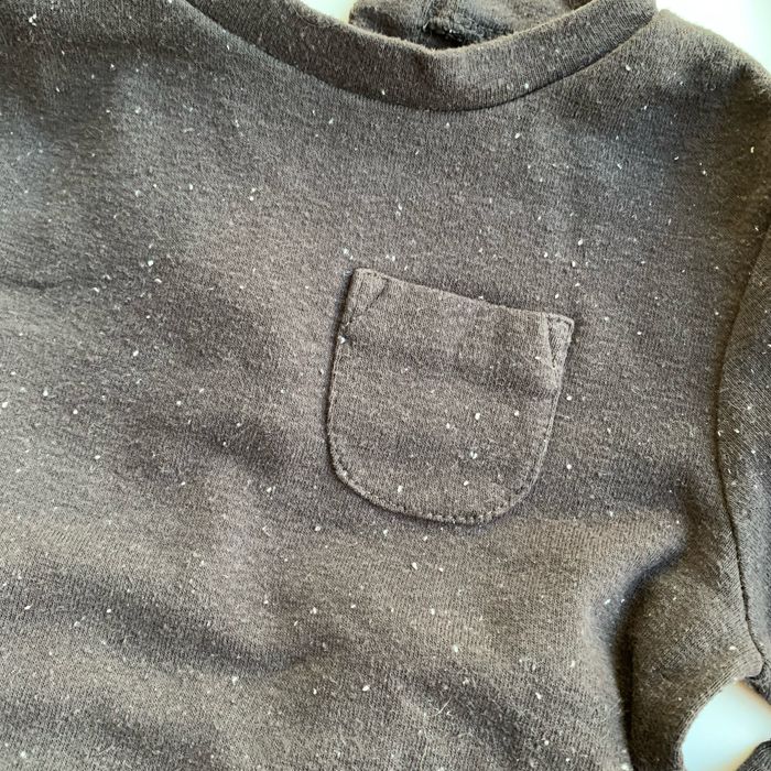 Pantalon velours gris moyen Boîte à malice T-shirt manches longues gris anthracite presque noir chiné blanc