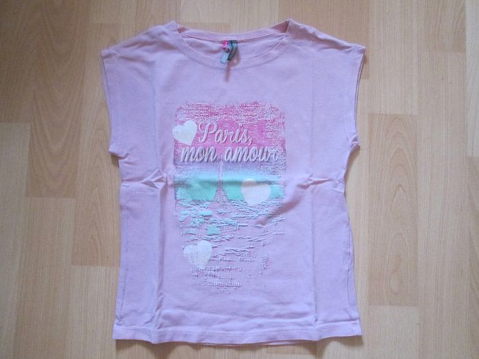 tee shirt fille couleur rose marque orchestra taille 6 ans manches courtes motif paris 100% coton tres bon etat