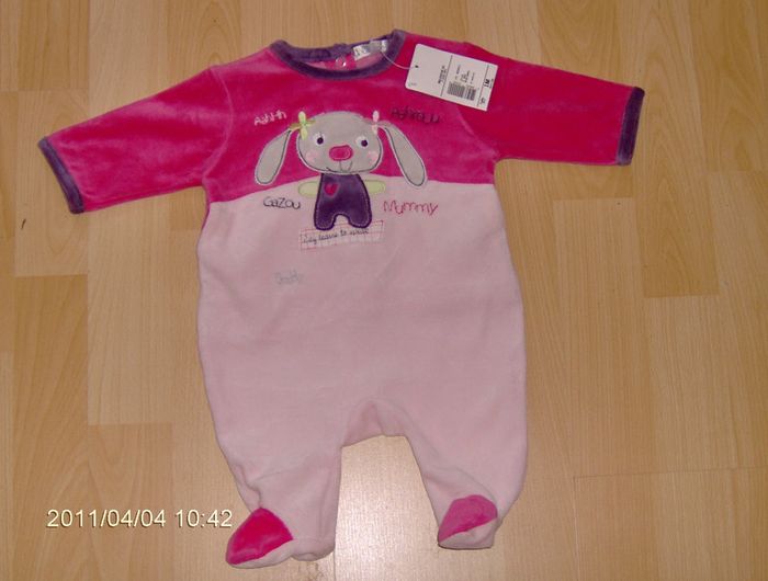 Pyjama couleur rose motif lapin fille 1 mois toute saison pression dans le dos marque kitchoun 77% coton 23% polyester Neuf avec etiquettes