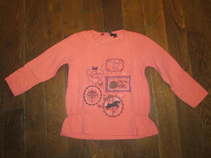 tee shirt fille 4 ans marque punkidz couleur orange motif 100% coton manches longues tres bon etat