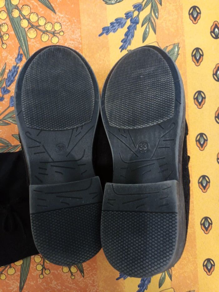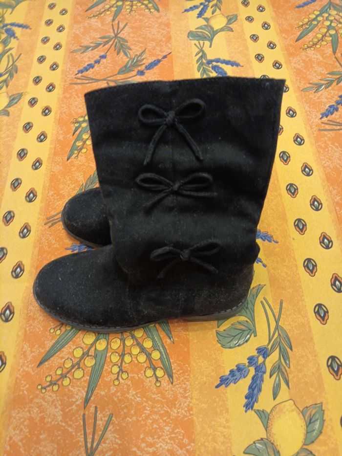 Bottes en daim Fille Couleur noir Fermeture éclair sur le côté intérieur Marque lovely skull Nœuds de decoration sur le côté exterieur Pointure 33 Très bon etat (juste poussières sur le devant visibles sur photo)