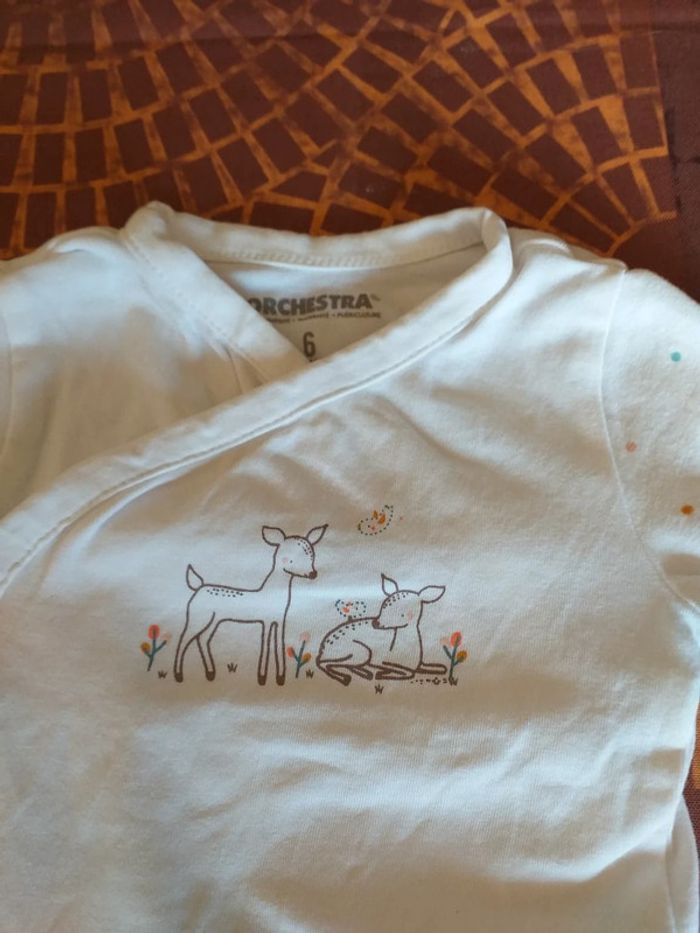 body mixte 6 mois couleur blanc motif faons marque orchestra tres bon etat