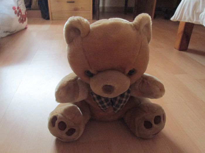 grosse peluche ours tient assis tout seul très bon état