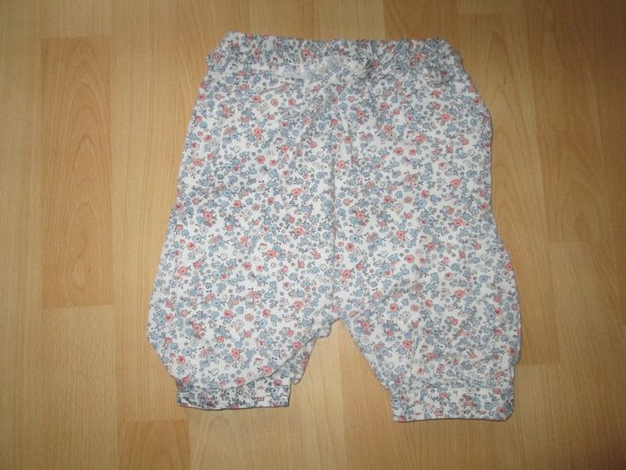 pantalon type sarouel bebe fille 9 mois (71cm) couleur blanc motif fleurs 100% coton tres bon etat marque tape a l oeil