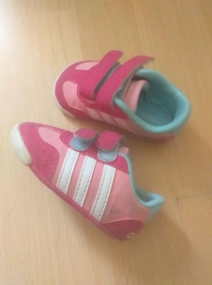 chaussures baskets bebe fille couleur rose marque adidas bon etat car noirci sur un coté (voir photo)