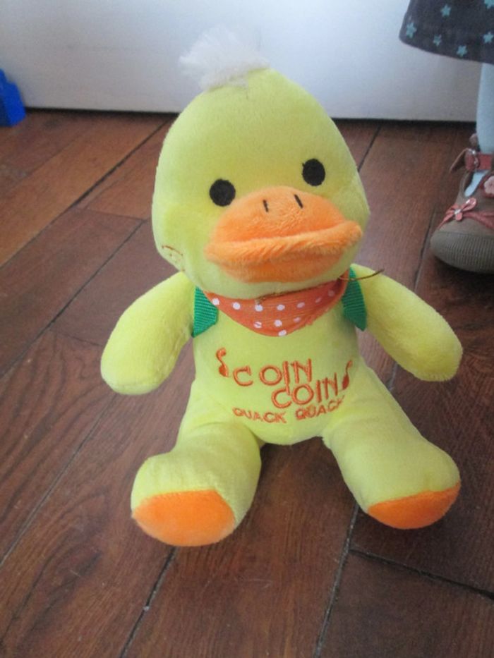 peluche canard fait coin coin quand on appuie sur le ventre marque fizzy tres bon etat