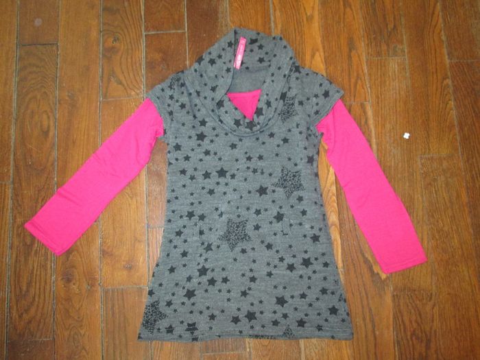 robe tunique fille 5 ans marque gémo 97% acrylique 3% elasthanne couleur gris et rose tres bon etat
