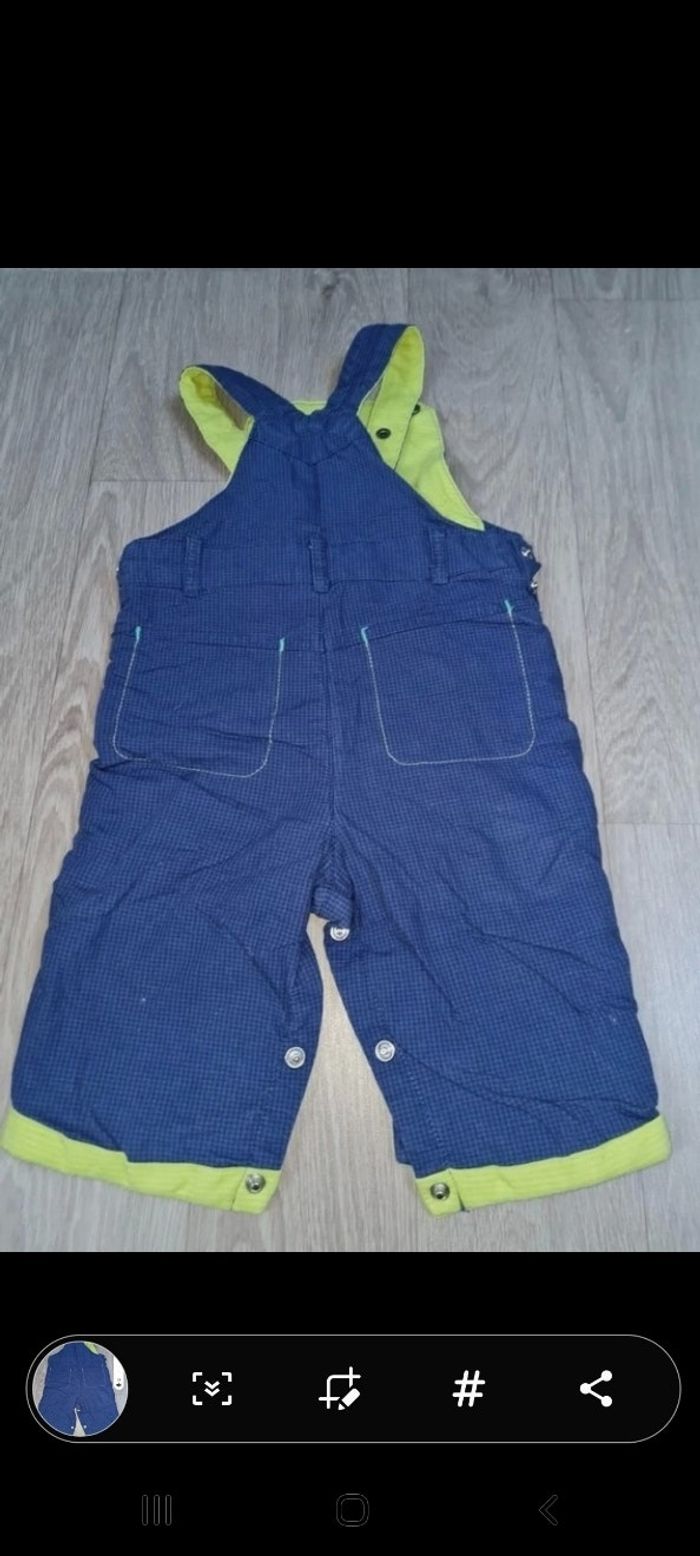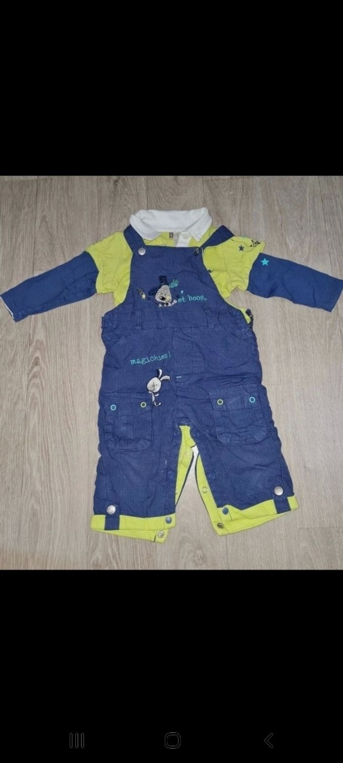 Ensemble 2 pièces marque Orchestra, taille 9 mois. Salopette bleu marine épaisse, intérieur vert pomme. Imprimé lapin et chien, différentes poches, pressions entre-jambes. Polo manches longues assorti (effet t-shirt manches courtes sur manches longues). 3 boutons et entièrement pressionné sur le devant. Très bon état. Tous mes articles sont lavés avant la vente.