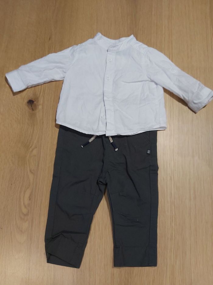 Pantalon gris marque Obaibi. Chemise blanche sans marque.