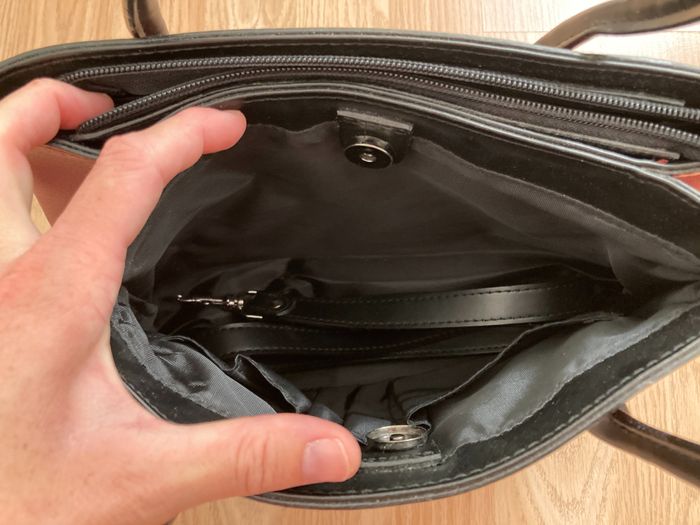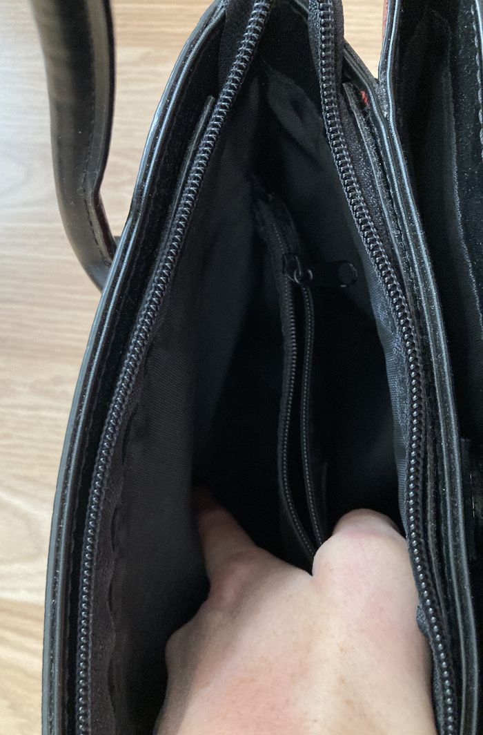 Sac à main très peu utilisé Marque Euroline Avec bandoulière, en simili cuir grainé, se fermant par fermeture éclair et bouton aimanté et avec de nombreux compartiments intérieurs, des poches intérieures et extérieures pour stylos, portables ou autres En livraison ou remise en main propre sur Montpellier