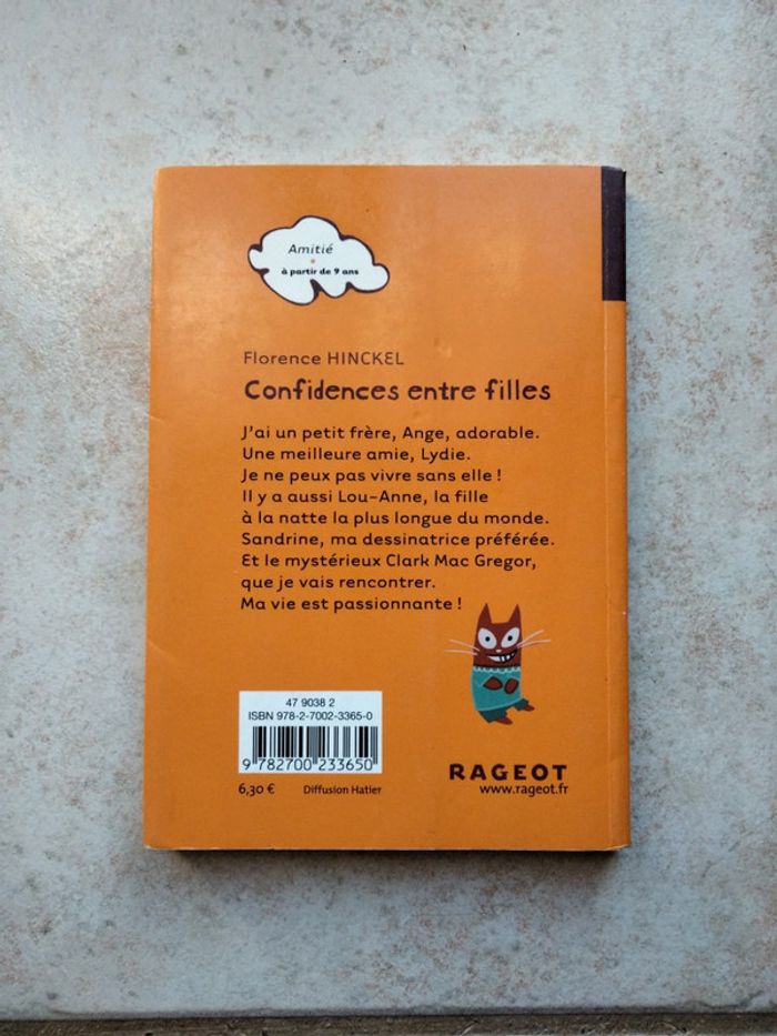 Livre "confidences entre filles". En parfait état. A partir de 9ans: 151pages #rageotromans