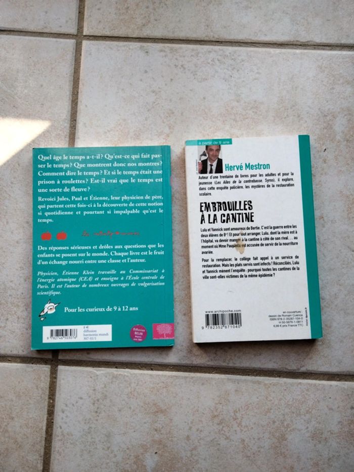 Lot de livres : "le temps qui passe" et "embrouilles à la cantine" Le tps qui passe : 9/12 ans 49pages. En parfait état Embrouilles à la cantine :10/12ans 150 pages. En bon état