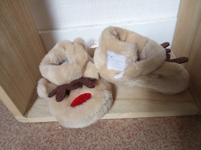 Chausson Noël motif  renne beige , chaud bebe mixte 0-6  mois - photo numéro 4
