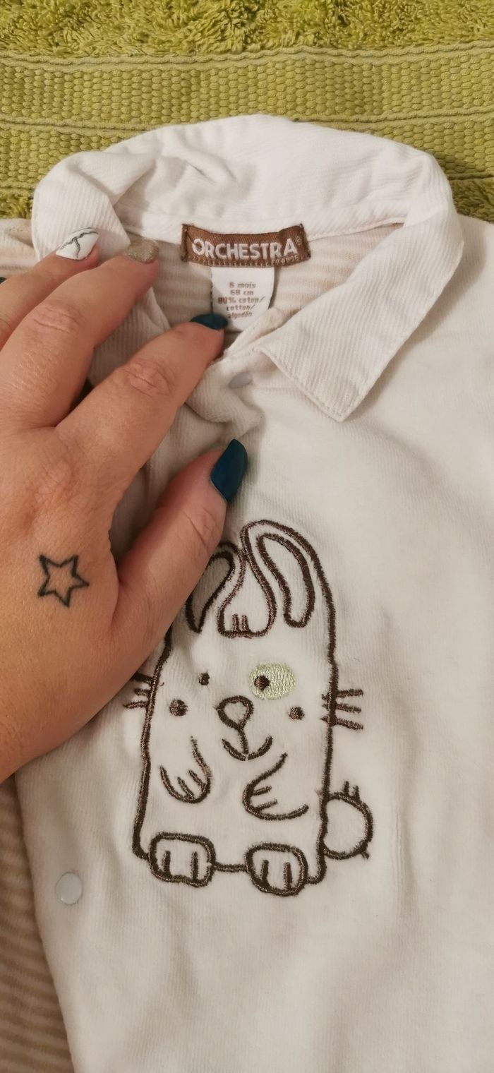 Pyjama velour taille 6 mois orchestra très bon état