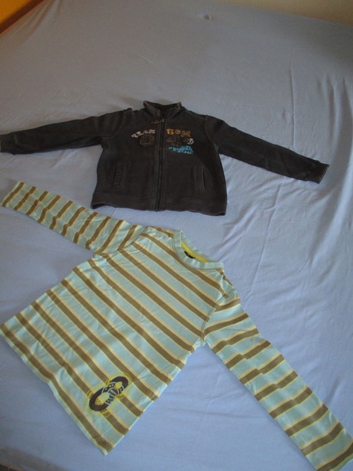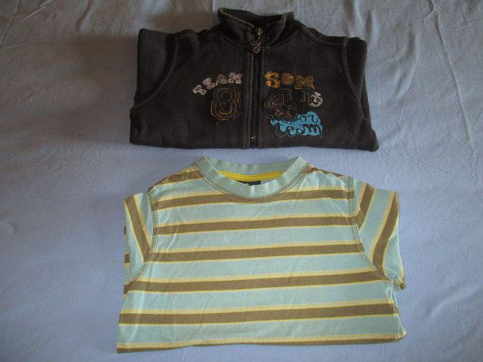 vend cet ensemble garçon comprenant un tee shirt manches longues 6 ans et un gilet de marque sergent major très bon état pour le tee shirt et bon état pour le gilet (couleur marine un peu délavée) propre remise en main propre ou frais de port à charge de l'acheteur #roux59184vetementsgarçons6ans