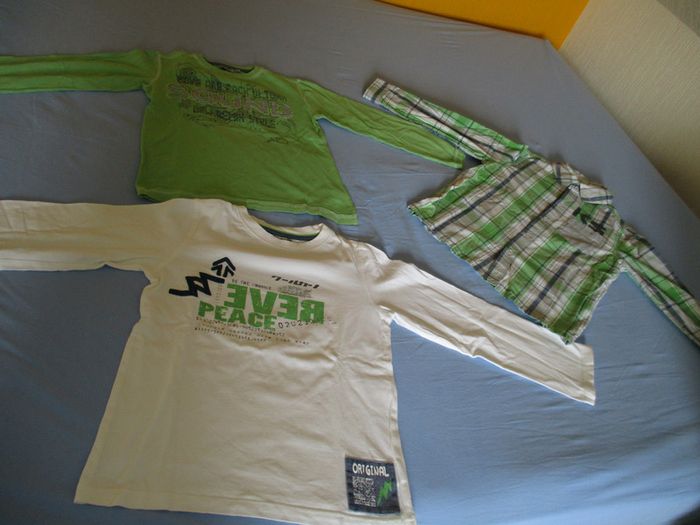 vend cet ensemble garçon tape à l'œil 8 ans comprenant une chemise et deux tee shirts manches longues très bon état (je signale juste une trace de stylo) propre remise en main propre ou frais à charge de l'acheteur #roux59184vetementsgarçons8ans