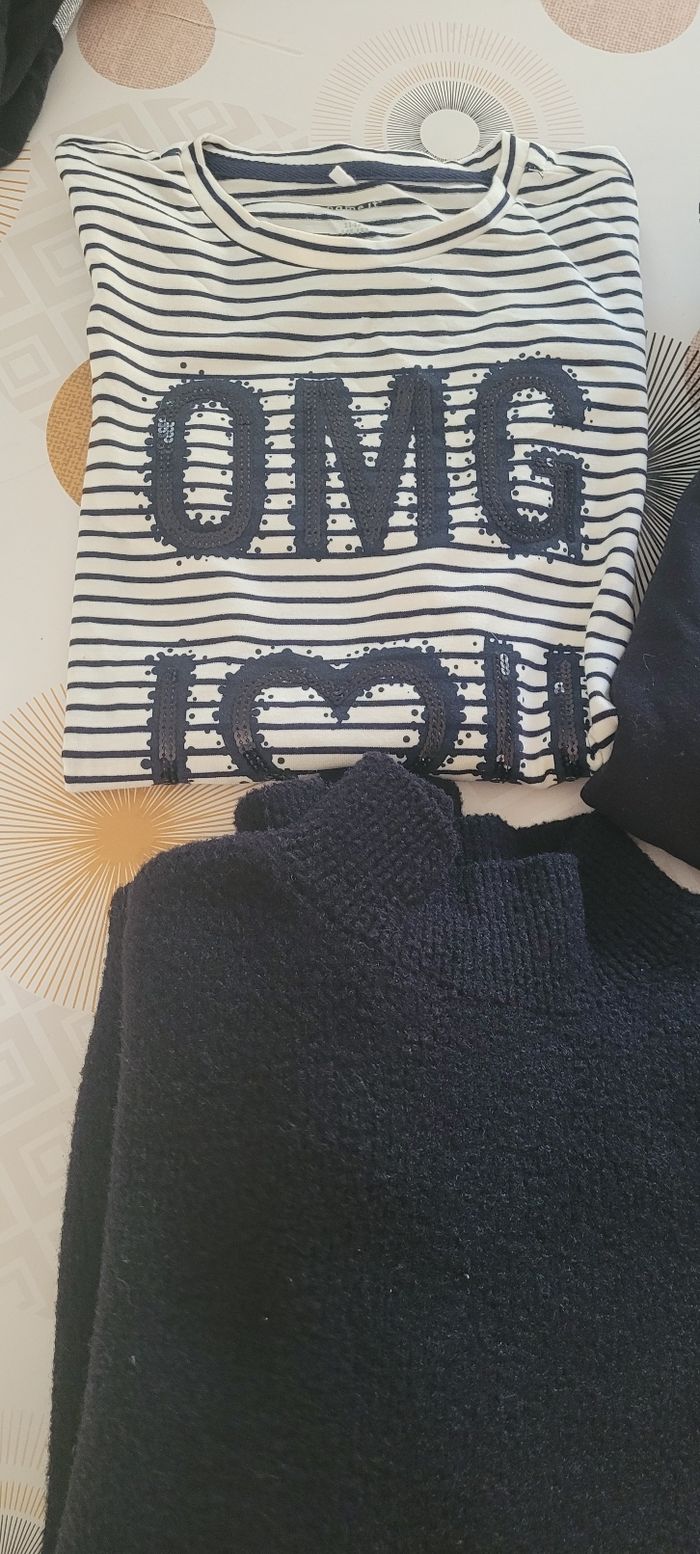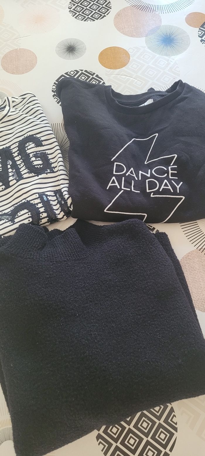 1 sweat 1 pull chaud 1 tee shirt ml taille grand (marqué 11/12) 1 robe